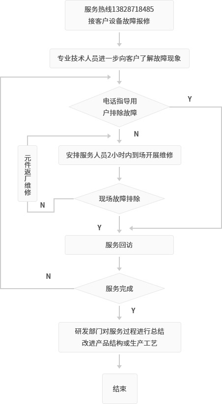 收到客户的投诉信息后,由专业技术人员在第一时间内与客户电话联系,对于可以电话处理的故障,及时通过电话为客户排出故障,不能电话处理的故障,将在24小时内到达客户现场,为客户开展服务。
