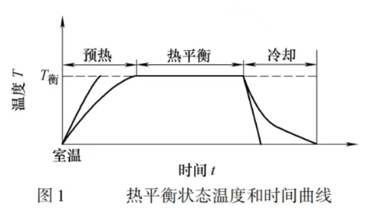 工艺系统受热源影响,温度逐渐升高,与此同时,其热量通过各种传导方式向周围散发。当单位时间内的热量传入与传出相等时,温度不再升高,这时工艺系统就达到热平衡状态。在热平衡状态下,工艺系统各部分的温度就保持在一个相对固定的数值上,因而各部分热变形也就相应地趋于稳定。图1所示为热平衡状态温度和时间曲线图。