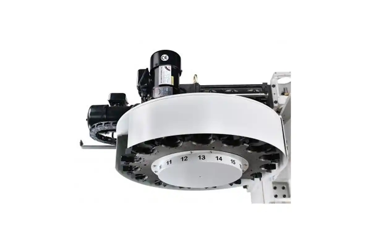 刀库换刀是一种常见的换刀方式,它通过刀库来存储和更换刀具。在换刀时,刀库会根据程序指令将指定的刀具移动到换刀位置,然后将刀具安装到主轴上。这种换刀方式的优点是刀具存储量大、换刀速度较快,适用于加工多种不同的零件。