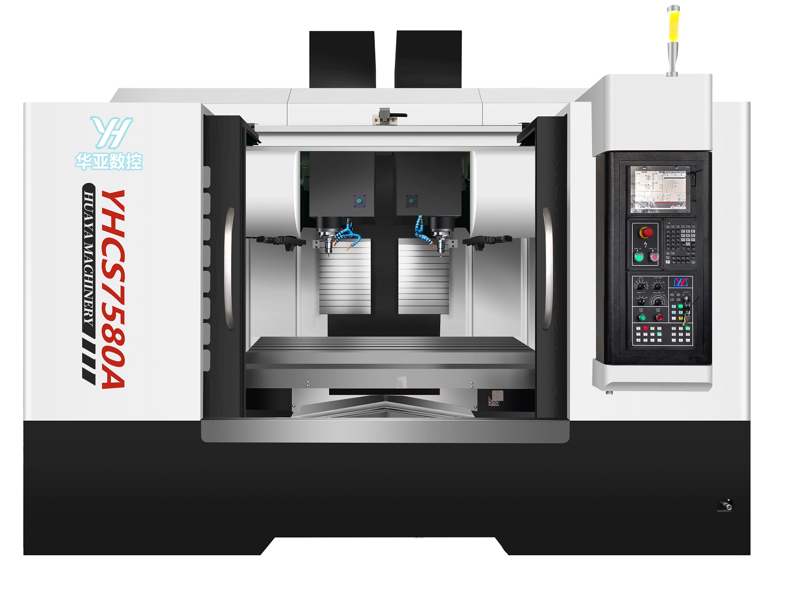 传统单主轴加工中心受限于机械结构,复杂零件需多次装夹定位,误差累积导致良品率波动。风暴娱乐自主研发的YHCS系列双主轴钻攻中心,通过平行布局的双主轴设计实现"双工位同步加工",在加工手机通讯精密零件时,可同时完成两个相同零件的钻孔、攻丝、铣削等工序。实测数据显示,该方案使加工效率提升100%,场地占用减少50%,人工成本降低40%,真正实现"降本增效"的双重目标。